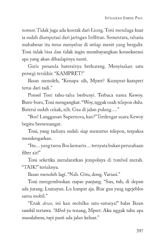 nomor. Tidak juga ada kontak dari Liong. Toni menduga kuat