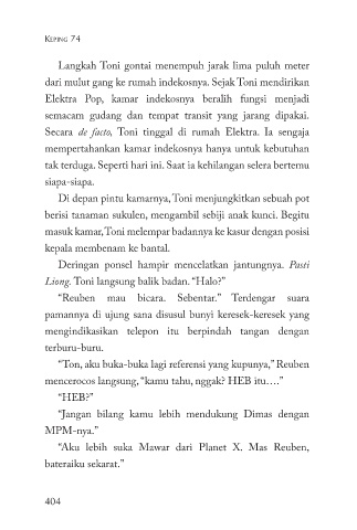 Liong. Toni langsung balik badan. “Halo?”