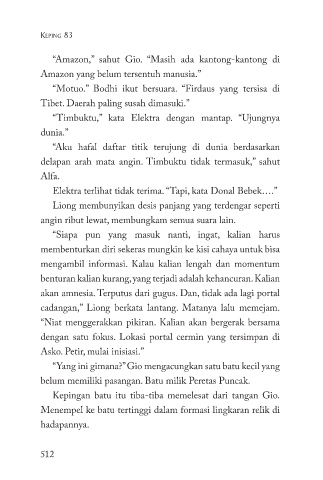 “Timbuktu,” kata Elektra dengan mantap. “Ujungnya