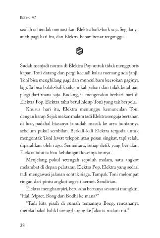 Elektra Pop. Elektra tahu betul hidup Toni yang tak berpola.