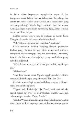 “Nih,” Elektra menawarkan selembar, “pakai saja.”