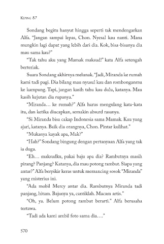 Suara Sondang akhirnya melunak. “Jadi, Miranda ke rumah