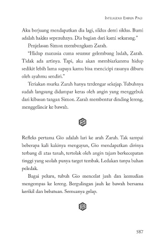 dari kibasan tangan Simon. Zarah membentur dinding lereng,