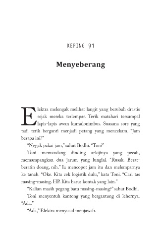 ke tanah. “Oke. Kita cek logistik dulu,” kata Toni. “Cari tas