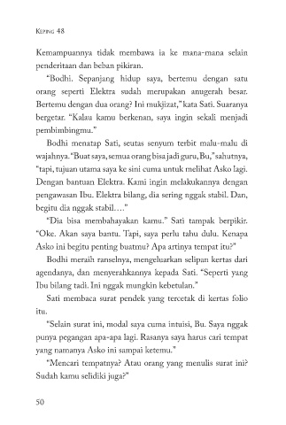 “Dia bisa membahayakan kamu.” Sati tampak berpikir.