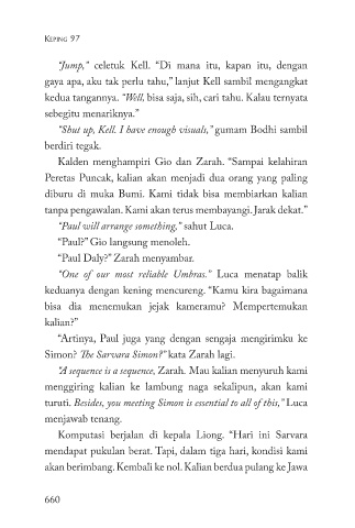 “Jump,” celetuk Kell. “Di mana itu, kapan itu, dengan