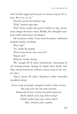 “Re,” panggil Alé di antara kunyahannya, “penerangan di