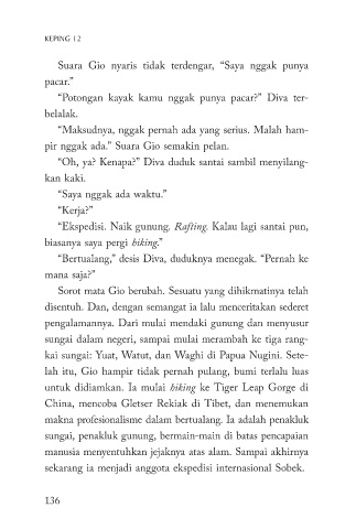 untuk didiamkan. Ia mulai hiking ke Tiger Leap Gorge di