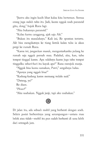 tinggalku sehari-hari itu kayak apa?” Rana merajuk manja.