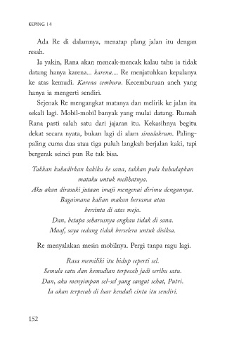 Re menyalakan mesin mobilnya. Pergi tanpa ragu lagi.