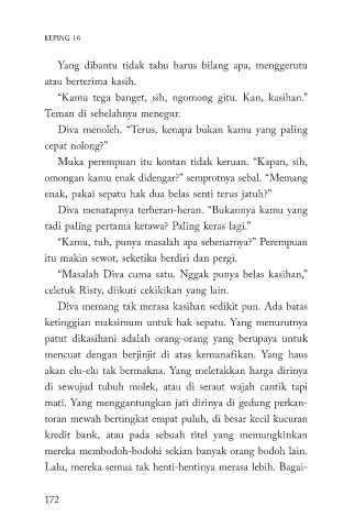 “Kamu tega banget, sih, ngomong gitu. Kan, kasihan.”