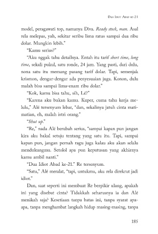 “Re,” nada Alé berubah serius, “sampai kapan pun ja ngan