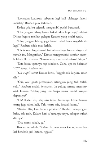 “Get a life,” sahut Dimas ketus, “nggak ada kerjaan amat,