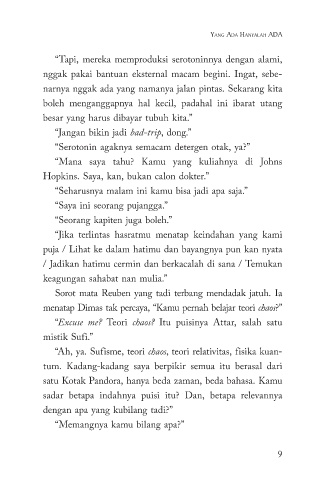 “Excuse me? Teori chaos? Itu puisinya Attar, salah satu
