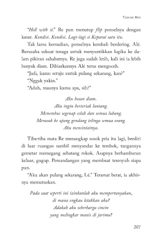“Hell with it.” Re pun menutup flip ponselnya dengan