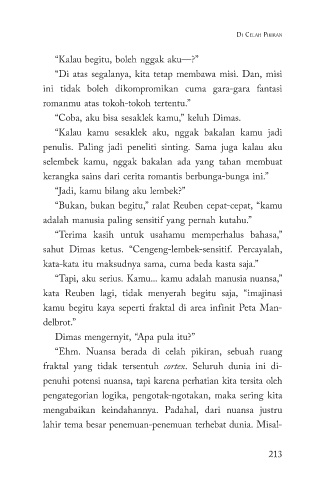 sahut Dimas ketus. “Cengeng-lembek-sensitif. Percayalah,