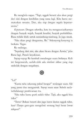 Re menghela napas. “Tapi, nggak berarti aku akan pergi