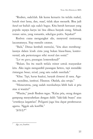 “Reuben, sudahlah. Ide kamu kemarin itu terlalu ma hal,