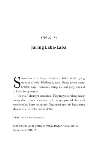 tertidur di sofa. Sebaliknya, mata Dimas justru mem-