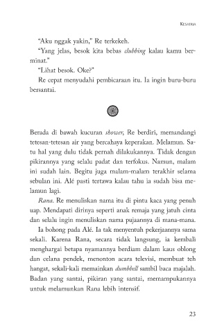 Rana. Re menuliskan nama itu di pintu kaca yang pe nuh