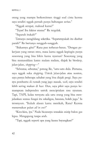 tersenyum. “Itukah alasan kamu menikah, Rana? Karena