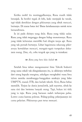 cuma pelarian. Pikirannya pun terus men cari.