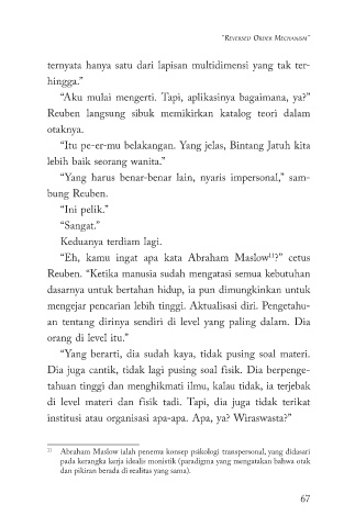 “Eh, kamu ingat apa kata Abraham Maslow ?” cetus