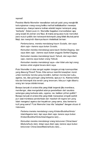 “berbeda”. Dalam puisi ini, Niemoller bagaikan menceritakan apa