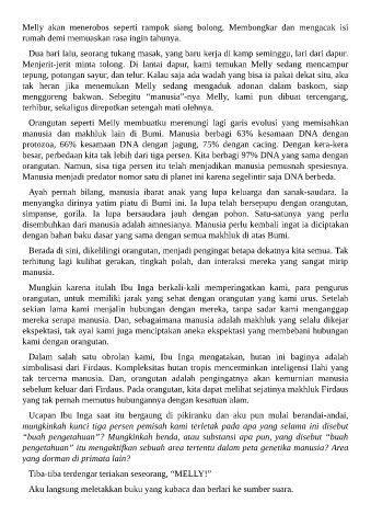 menyangka dirinya yatim piatu di Bumi ini. Ia lupa telah bersepupu dengan orangutan,