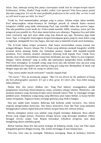 besar. Tapi, si fotografer diuntungkan dengan kesempatan gratis pergi ke alam bebas yang
