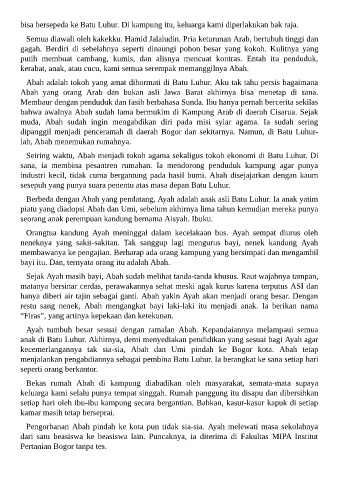 Berbeda dengan Abah yang pendatang, Ayah adalah anak asli Batu Luhur. Ia anak yatim