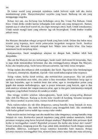 Sesaat kemudian, terngiang pesan Ibu Inga untuk tidak membebani Sarah dengan sampah