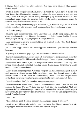 “Waalaikumsalam. Sehat kamu, Zarah?” Ibu mendekapku sesaat. Detik itu aku pun