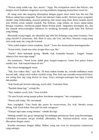 “Kita sudah siapkan kamar untukmu, Zarah.” Suara Ibu memecahkan ketertegunanku.