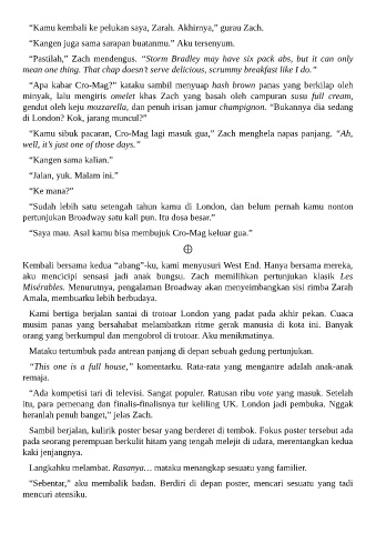 “Kamu sibuk pacaran, Cro-Mag lagi masuk gua,” Zach menghela napas panjang. “Ah,
