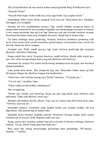 Sayup, seperti dari kejauhan, padahal aku tahu ia berada di dekatku, terdengar Hawkeye