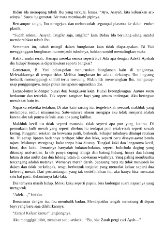 Sementara itu, tubuh mungil dalam bungkusan kain tidak diapa-apakan. Bi Yati