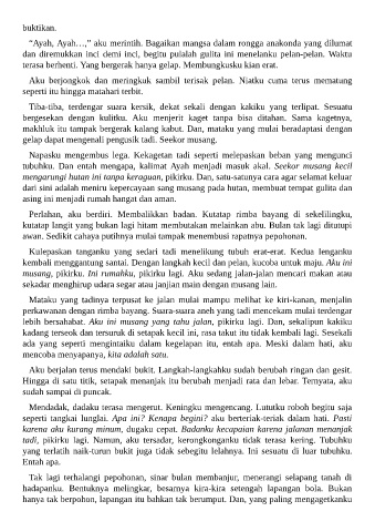 “Ayah, Ayah…,” aku merintih. Bagaikan mangsa dalam rongga anakonda yang dilumat