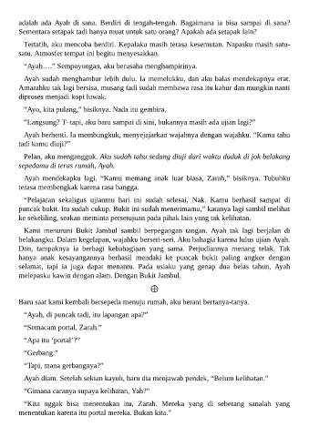 Ayah mendekapku lagi. “Kamu memang anak luar biasa, Zarah,” bisiknya. Tubuhku