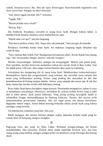 mendahuluiku. Aku terlambat. Rumah Abah sudah digeledah kemarin sore, dan kata