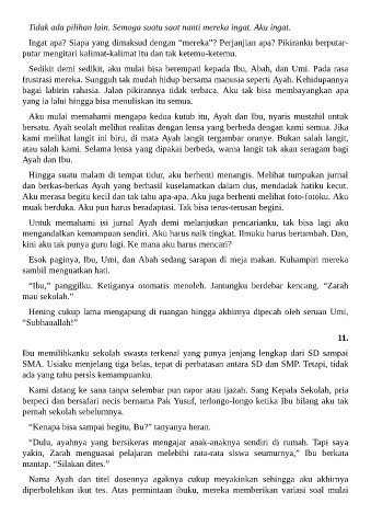 “Ibu,” panggilku. Ketiganya otomatis menoleh. Jantungku berdebar kencang. “Zarah
