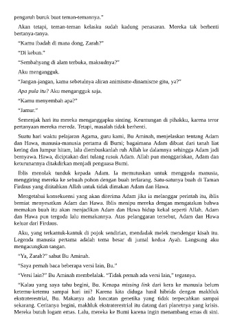 Suatu hari waktu pelajaran Agama, guru kami, Bu Aminah, menjelaskan tentang Adam