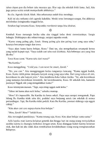 Koso menggeleng. “I told you. I can never be smart, Zarah.”