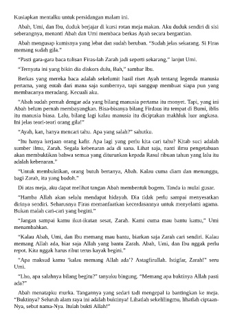 “Apa maksud kamu ‘kalau memang Allah ada’? Astagfirullah. Istigfar, Zarah!” seru