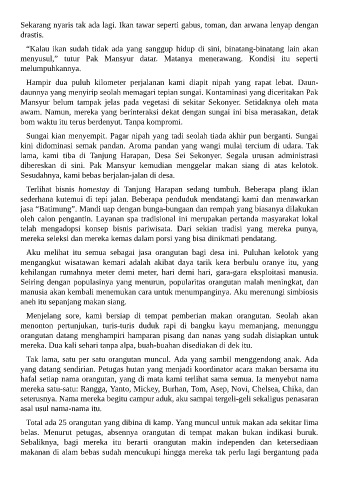 Aku melihat itu semua sebagai jasa orangutan bagi desa ini. Puluhan kelotok yang