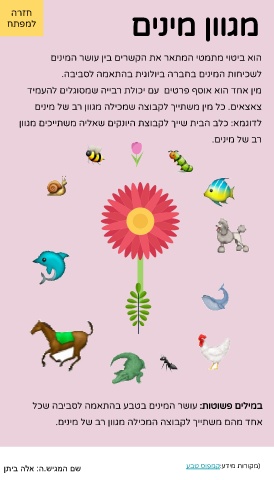 במילים פשוטות :עושר המינים בטבע בהתאמה לסביבה שכל