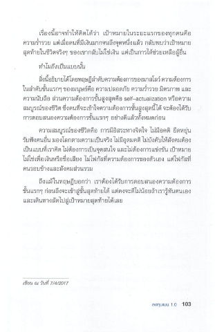 ในล้าดับขั้นแรกจุของมนุษย์คือ ความปลอดภัย ความรื่ารวย มิตรภาพ และ