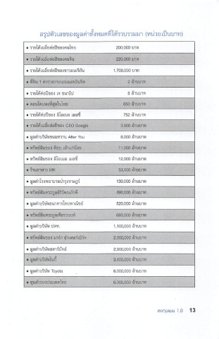 สรุปตัวเลขของมูลค่าทั้งหมดที่ได้รวบรวมมา (หน่วยเป็นบาท)
