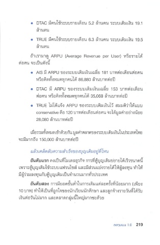 • AIS มี ARPU ของระบบเติมเงินเฉลี่ย 181 บาทต่อเดือนต่อคน