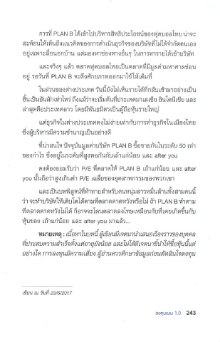 คงต้องยอมรับว่า P/E ที่ตลาดให้ PLAN B เถ้าแก่น้อย และ after